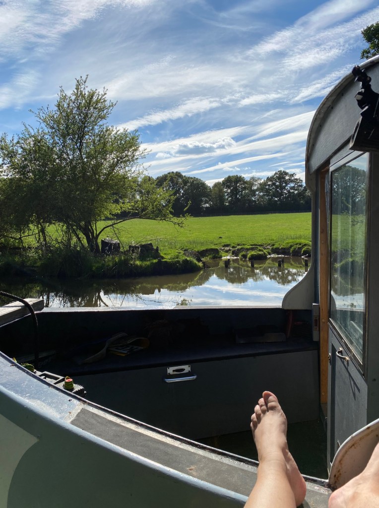 4hrs 45mins later we arrived and found a good mooring to stop. The weather has been stunning so the mini rig came out, along with the chairs, a cold beer. In this moment life felt great, far removed from worrying about no work or what’s happening next etc. I rounded the evening off with getting my yoga mat out and doing a lovely sunset session on the bank to stretch out the aching limbs before dinner. As i sit writing this the light is fading fast but all i can see whizzing past my windows are loads of bats! bloody love bats, shame they fly too fast to truly see them!