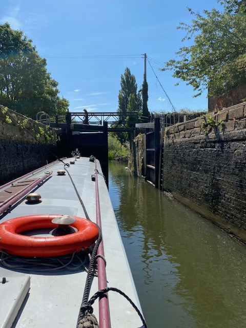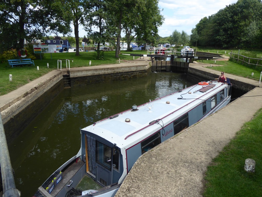 As we pulled up to Pershore lock we saw the other 2 boats from the mooring last night stopping for lunch. Pershore lock is very odd as diamond shaped, means you never quite know how to line your boat up in it! Luckily a boat was coming up, a single header so we helped him in.