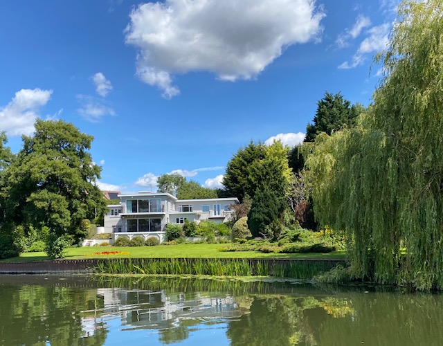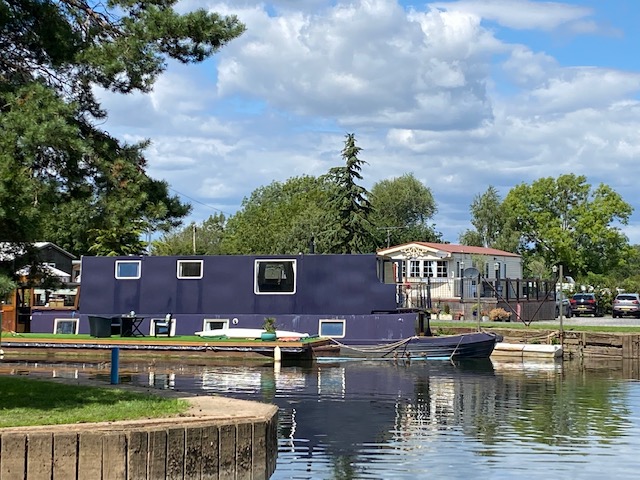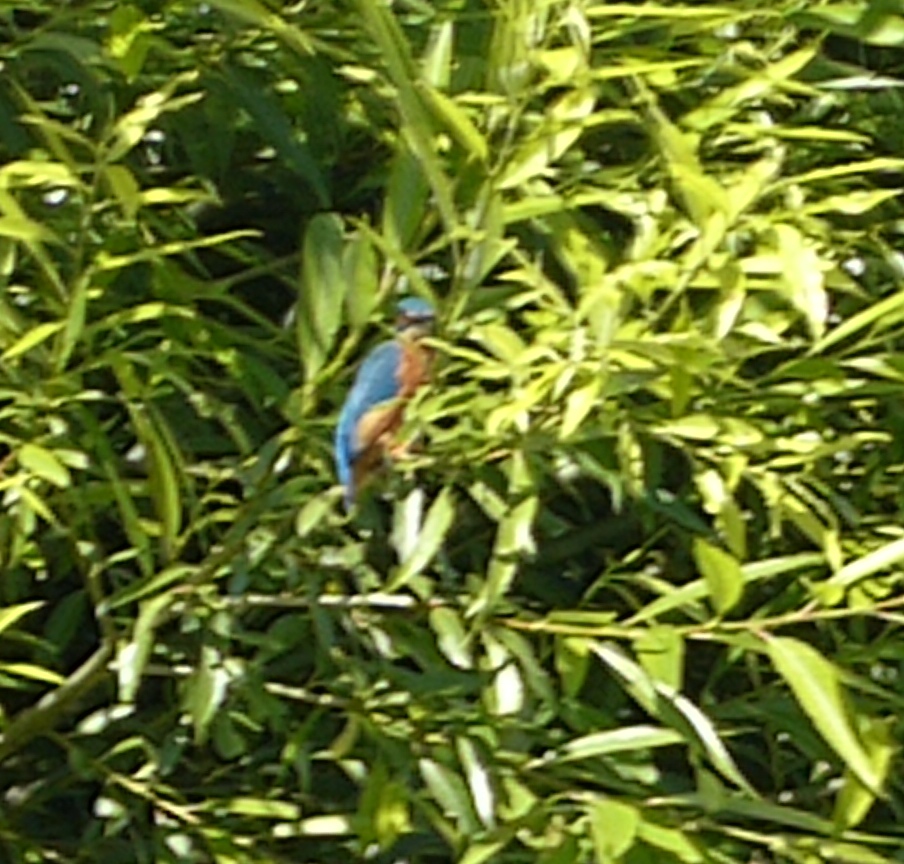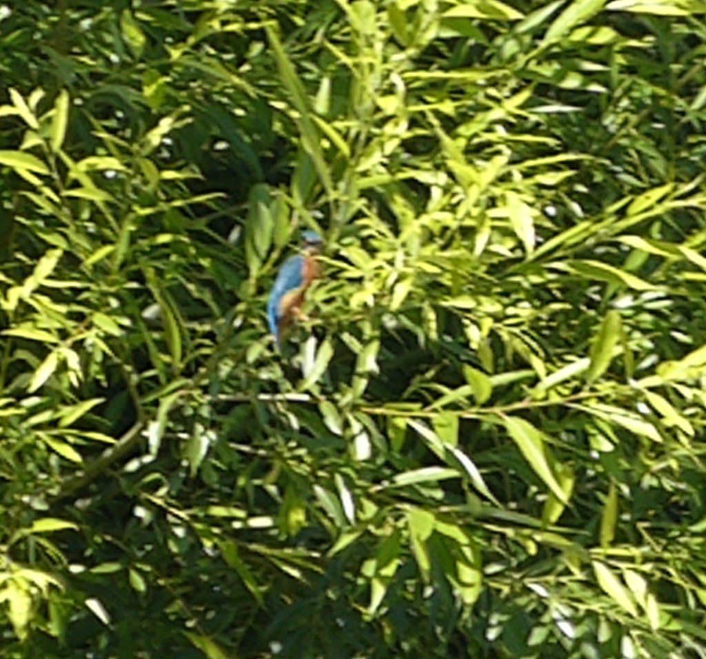 After our day relaxing here we set off again, boating on the rivers mainly means, looking at the wildlife, looking at the posh houses and just relaxing as you float on down the gentle current. Trying to get a picture of a Kingfisher is really hard work, here is todays effort, hoping for a better version as time goes on. (spot the blue blob in amongst the green)