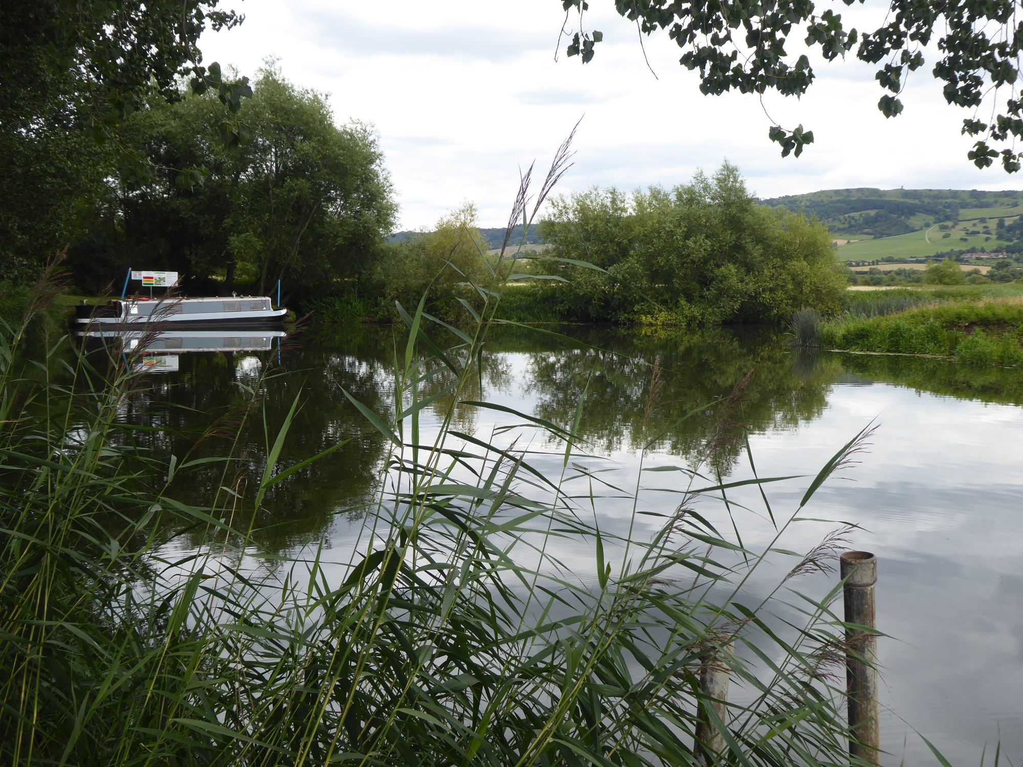After our day relaxing here we set off again, boating on the rivers mainly means, looking at the wildlife, looking at the posh houses and just relaxing as you float on down the gentle current. Trying to get a picture of a Kingfisher is really hard work, here is todays effort, hoping for a better version as time goes on. (spot the blue blob in amongst the green)