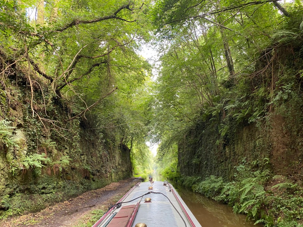This was genuinely a lovely day. After leaving Little Soudley it was a gentle amble through Woodeaves cutting. Being narrow, this had the possibility of being a little bit of a struggle if we were to meet a boat coming the other way but with our early start we didn’t have to worry as it was super quiet. A beautiful steep ravine up either side of the canal with loads of wet mossy rock with so much lush vegetation it felt like I was in a jungle!