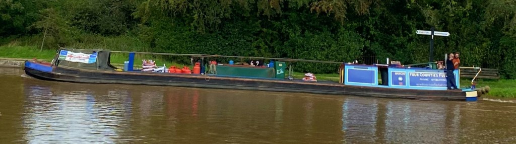 The next few locks were great and we met a lovely boat coming the other way on every one. Some liveaboards and some hire boats and all very friendly, jolly and chatty. Lots of local advice about where we’re headed along with funny tales and shared laughs. We paused coming out of the second lock as a fuel boat was using the winding hole below to turn around. When we did it, we spun on a six-pence as my boat is quite short and she turns well. Watching this heavy 70ft (maybe 72ft) beast of a boat turn in the same space was like watching Austin Powers and his 50 million point turn in the golf buggy. Such skill to turn a boat that size.