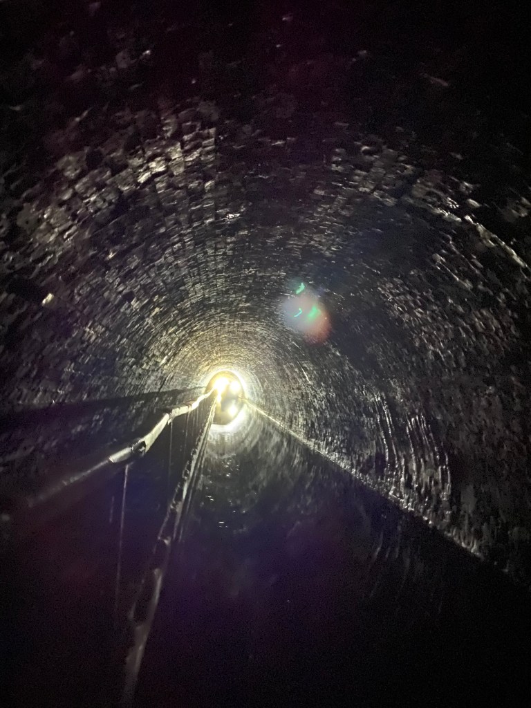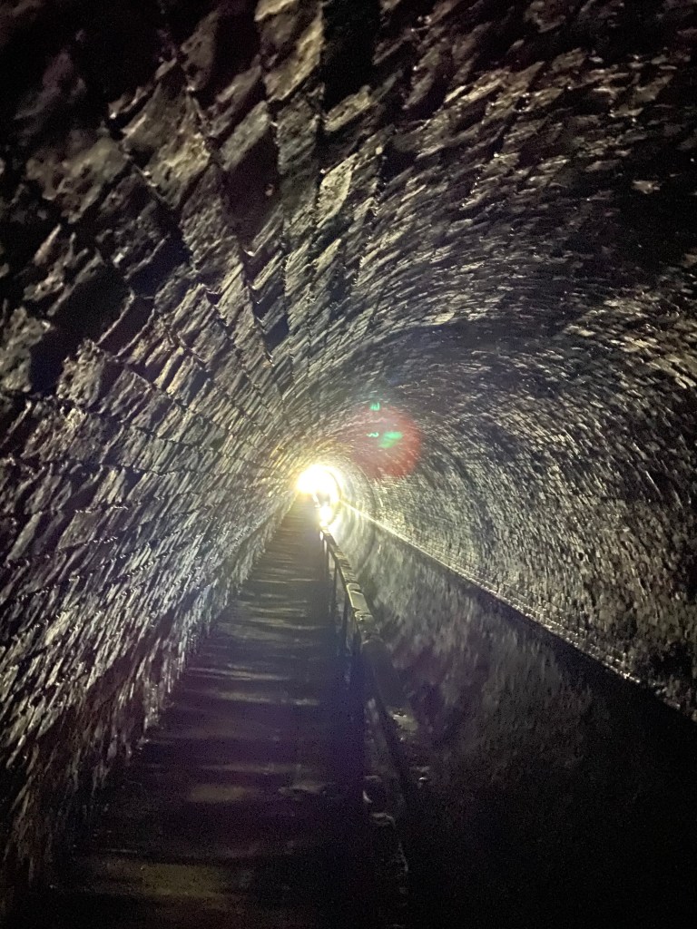 It was easier for me to walk the tunnel. At 459 yards it isnt that long but still 10-15 minutes to get through it on the boat. I did try and walk without my phone torch in the middle but I didn’t last long as it really was pitch black and I kept walking into the wall. It was fun nonetheless and I met Richard & Māhina out the other end with a relaxing tree tunnel to calm us both down after navigating both the aqueduct and the tunnel. I tried to get some pictures of the boat in the tunnel and although you can’t see her, I was really happy with the strange arty effect my phone gave me with no effort on my part!