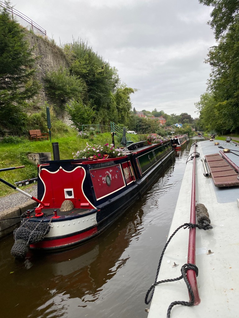 Phew! made it through those and only had a little bit of reversing to do before going into the wharf and didnt fluff it up. Found a spot in the basin and I moored up and did a little happy dance as pontoon mooring is still not my forté. You pay £6 for 24 hours on the pontoons and that includes electric hook up and water so we paid for 2 days as we’re going to explore Llangollen town a little this afternoon and tomorrow.