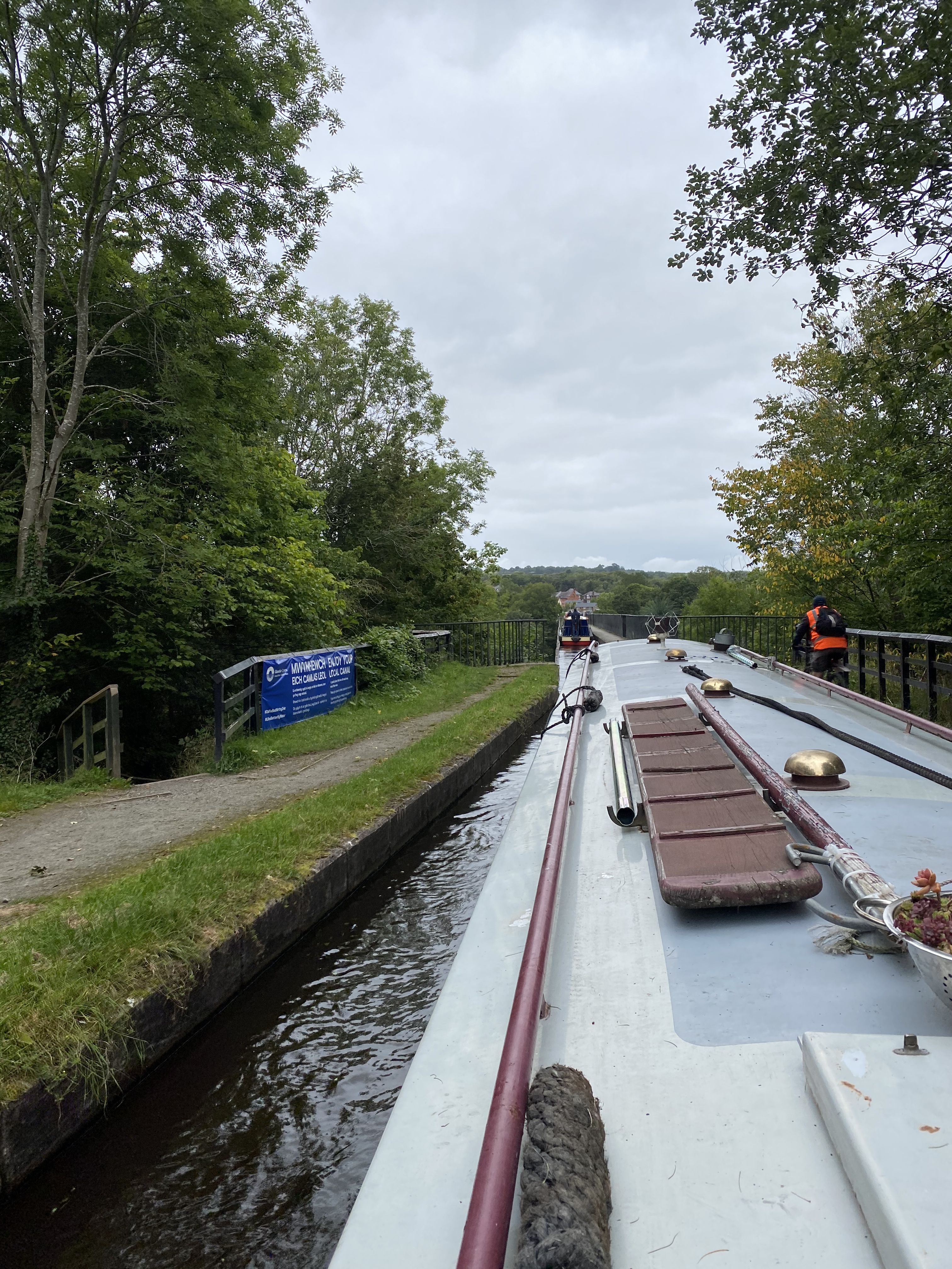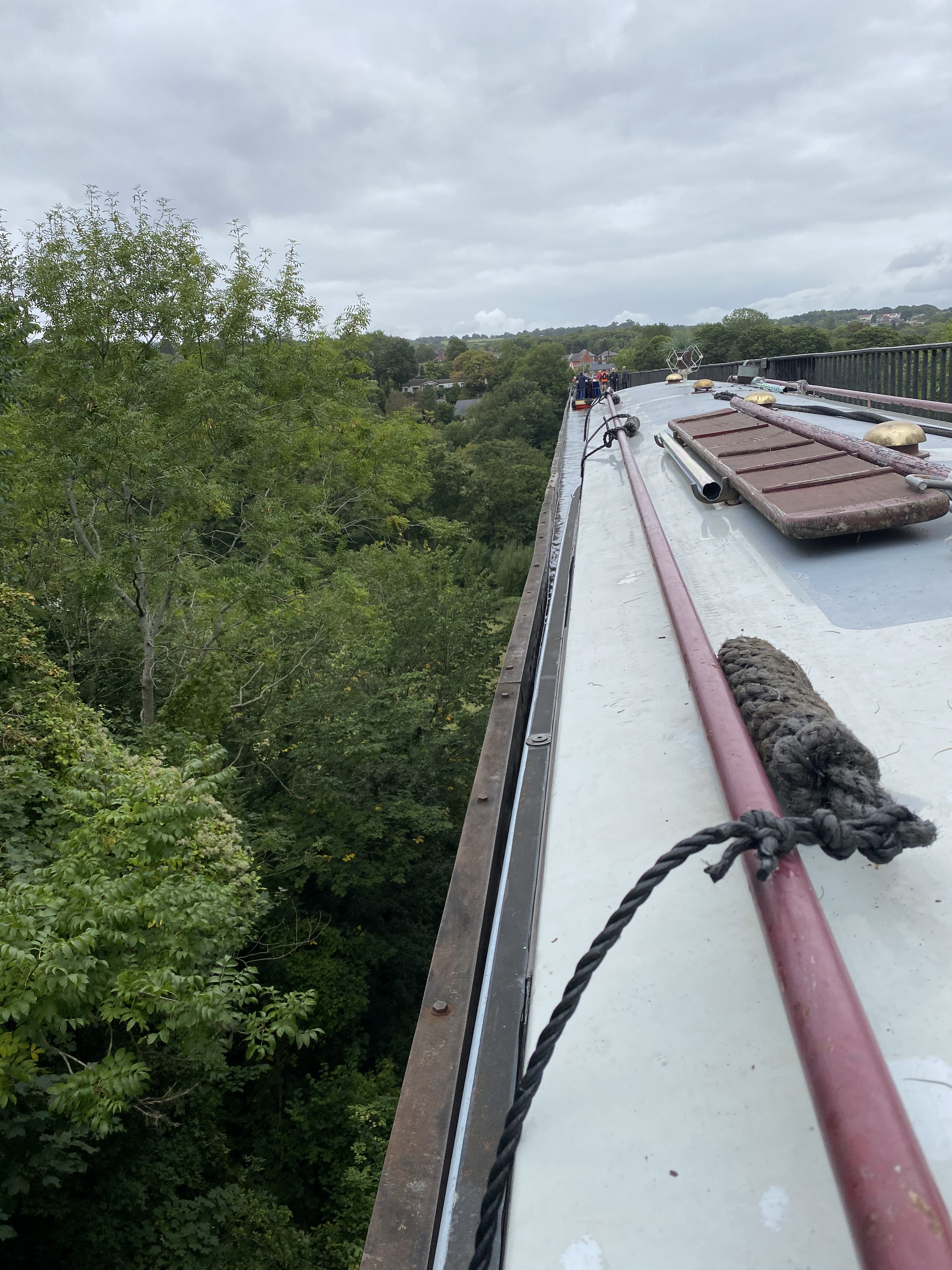 It’s only 12 feet wide including the towing path so it’s a snug fit for the boat going over. Although there is a handrail on the path side there is nothing but a sheer drop the other which is pretty scary when you’re stood on the boat.