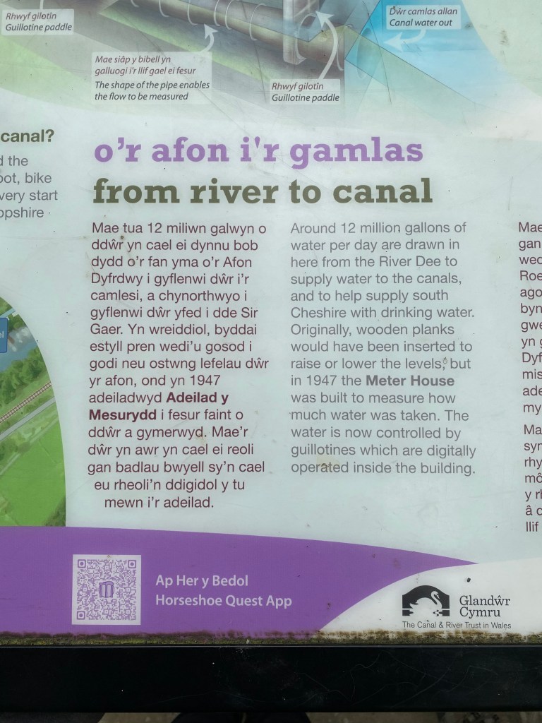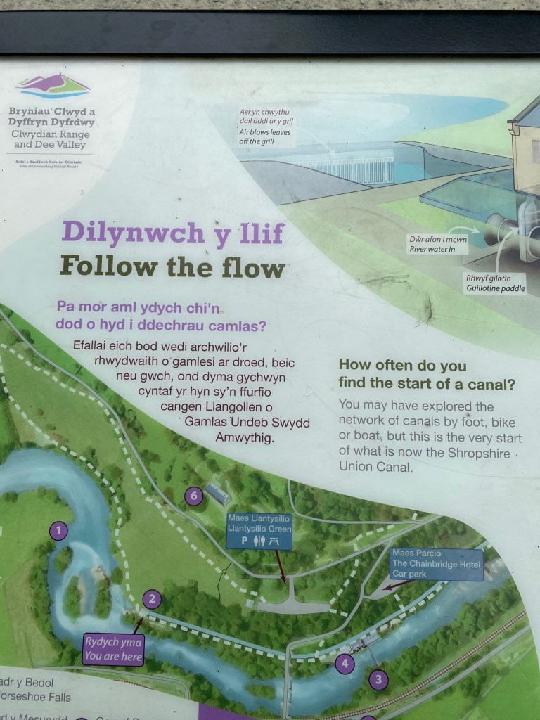 This is where the Llangollen canal starts, a rare opportunity to see the start of a waterway that has been created by diverting some of the water out from the River Dee. A manmade falls was created and a guillotine lock controlled pump house to allow the water to feed into the canal.
