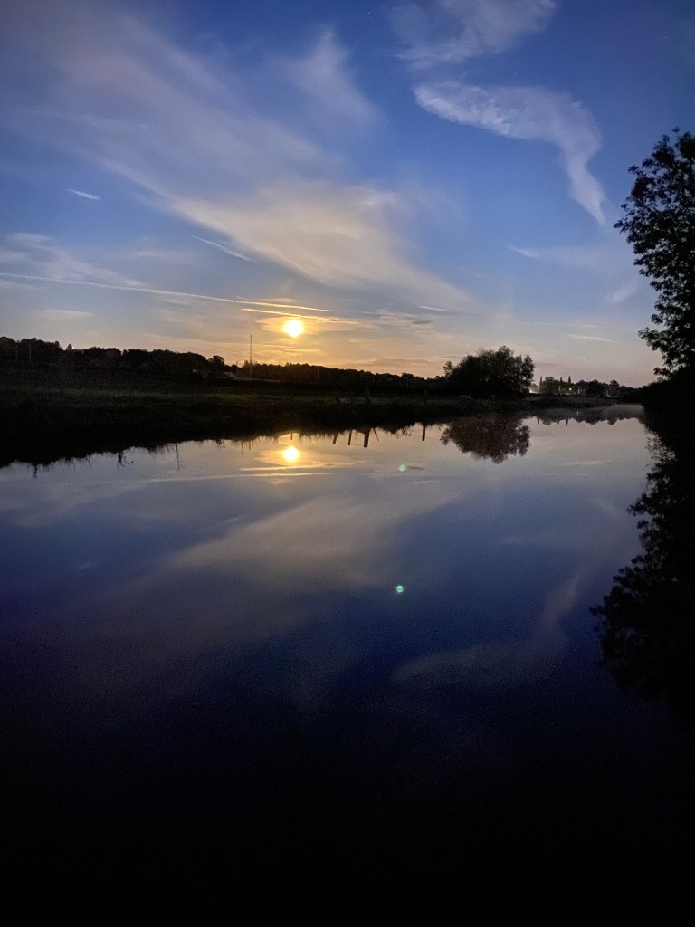A short distance down from the marina we pulled over for the night. I was mesmerised by the skys reflections in the water there, looked like we were floating on the sky! I couldn’t capture it but the moon looked amazing tonight, so low and big with a perfect reflection.