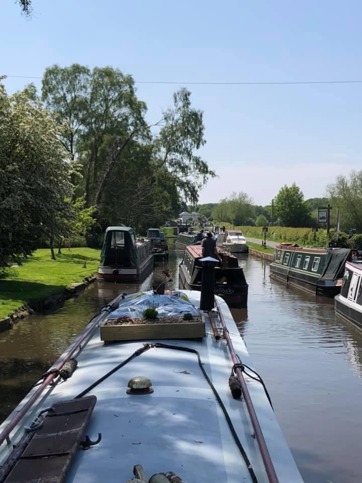 A little run of locks and some lovely scenery took us to Handsacre where found a nice spot for the night. We had a dinner planned with my bosses from the Covid job that has kept me floating (literally!) for the last many months. Was so lovely to see them and enjoy a fab meal out. To top it off a day not moving the next day so found the sun spot and settled in to the front deck office.